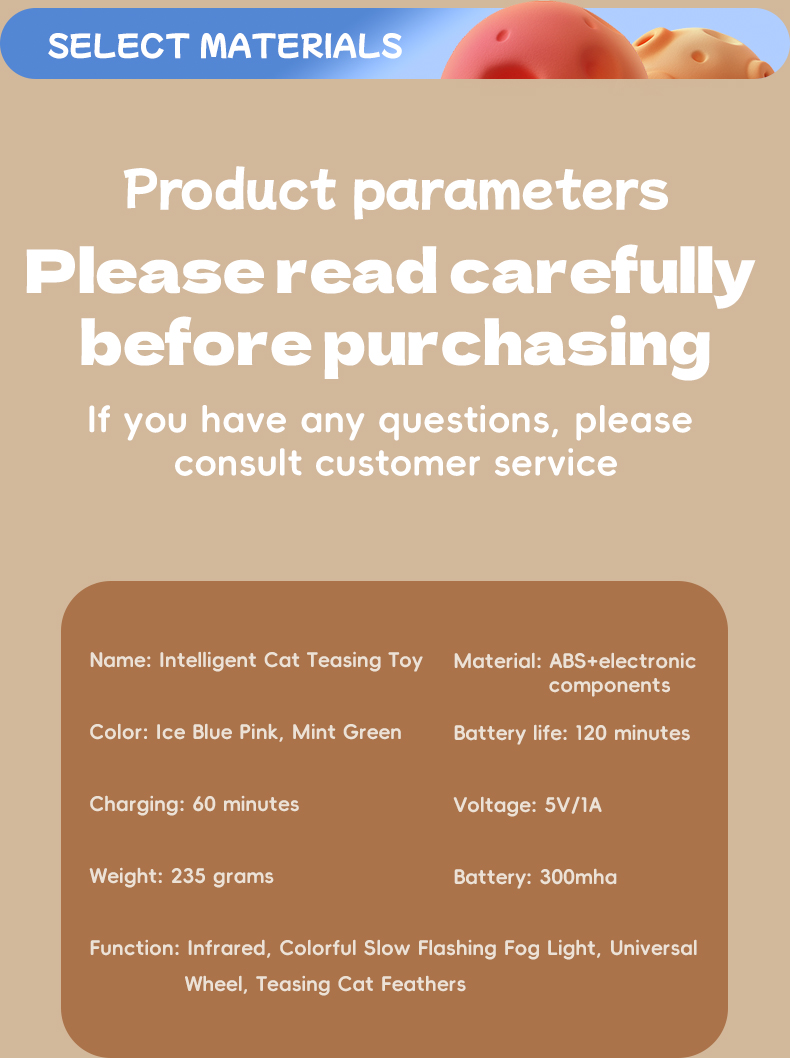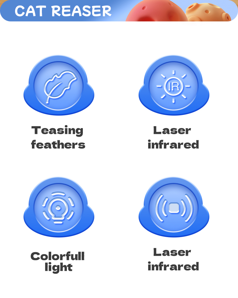 Function: Infrared, slow flashing fog lights, swivel wheels, cat feather teasing